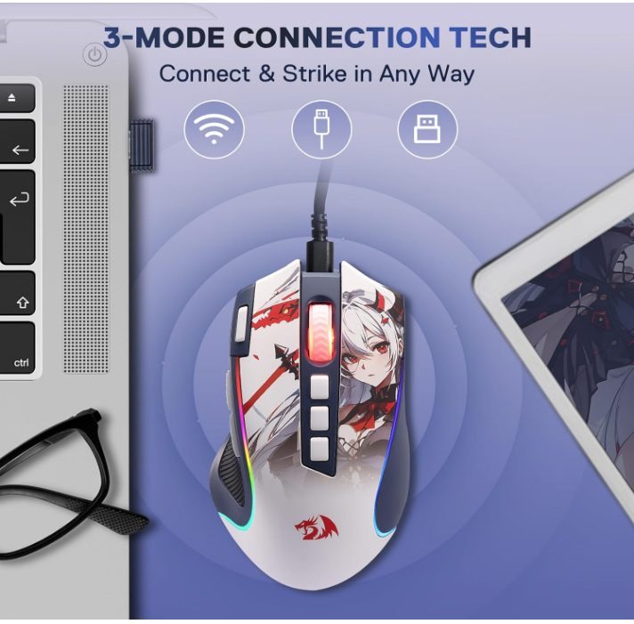 Core Printed Redragon M612AK PRO RGB Gaming Mouse, 8000 DPI Wired/Wireless Optical Mouse with 9 Programmable Buttons